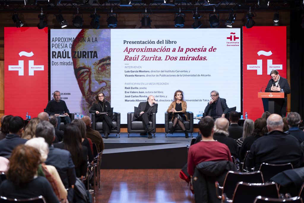 El evento, que tuvo lugar el viernes 28 de noviembre de 2025, fue inaugurado por el director del Instituto Cervantes, Luis García Montero, y reunió a figuras esenciales como el propio poeta Raúl Zurita, doctor honoris causa por la UA, los autores y Marcela Albornoz Dachelet, directora de la Editorial Universidad de Talca.